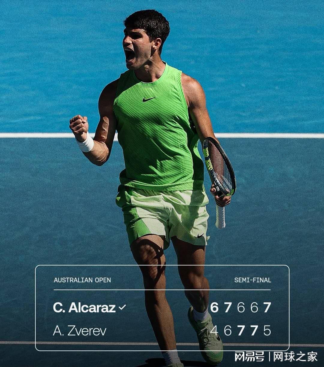 阿尔卡拉斯还说:“我要把半决赛的战斗方式带到决赛中去,做好再打一场大战的准备。去年澳网半决赛对阵带伤作战的德约科维奇,我在赢下第一盘之后有些犹豫不决,结果连输三盘。面对他这种历史级别的伟大对手,我知道每一秒钟都不能迟疑。今年我的感觉非常好,每天都在进步,这让我内心获得了极大的平静。因为我知道,无论输赢,我都会打出精彩的网球,这让我很安心。”